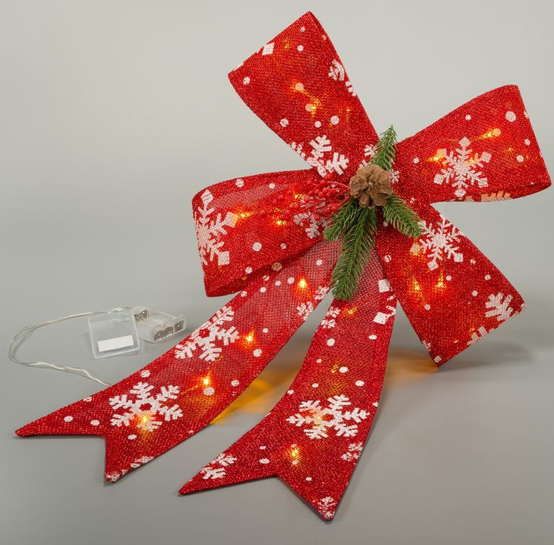 Ozdoba świąteczna, czerwona kokarda, 20 diod LED, ciepła bie