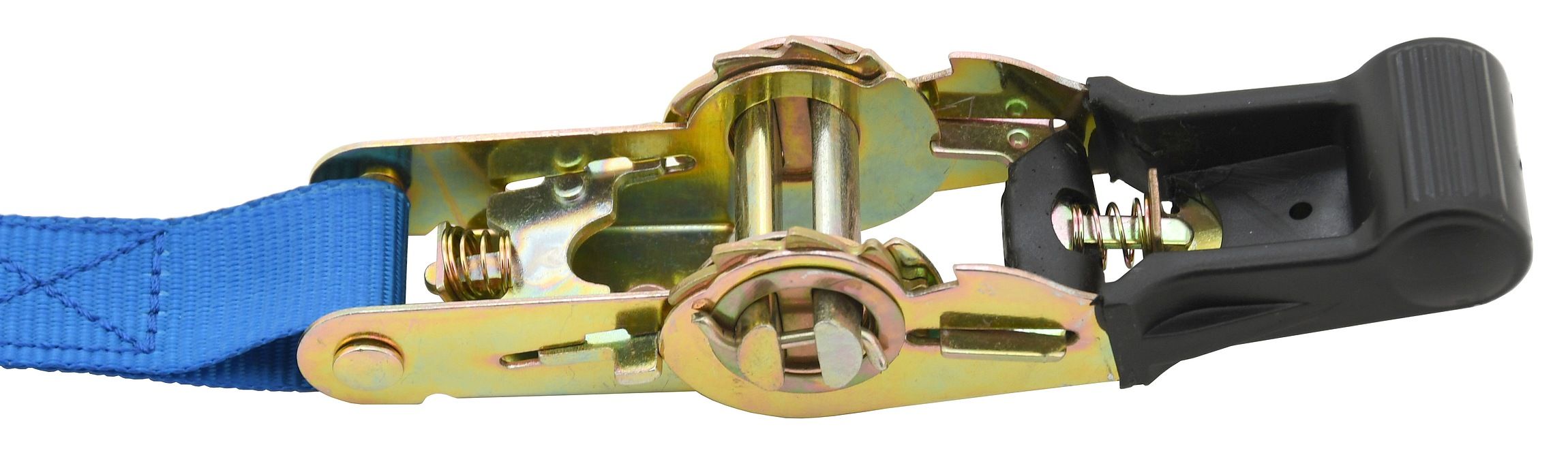 Zaciskowy pasek z grzechotką z metalowymi haczykami, z atestem TÜV / GS, do zabezpieczania średnich ładunków. Niezbędny dla każdego kierowcy.