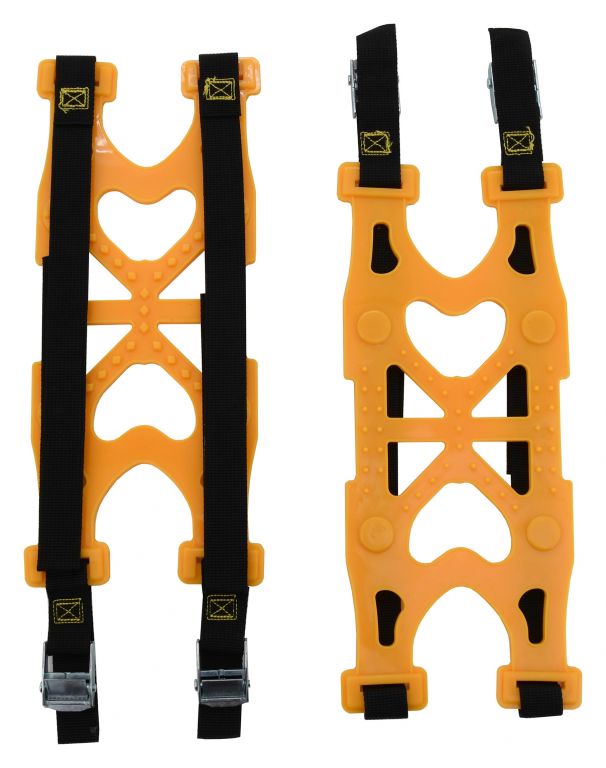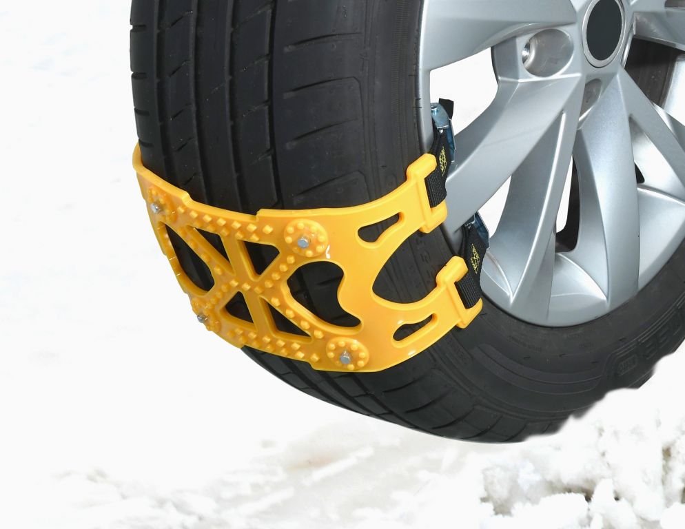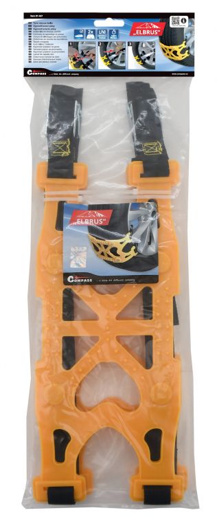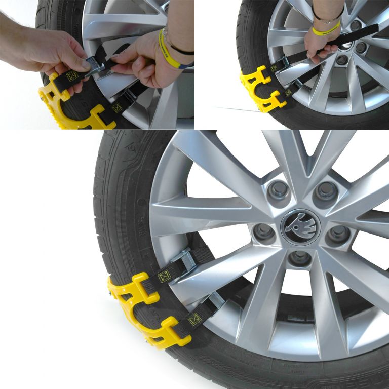 Uniwersalne pasy ratownicze do ratownictwa w razie śniegu i lodu. Pasy pasują do wszystkich popularnych rozmiarów opon (ALU i stalowe tarcze). Idealne zapięcie, szybki i łatwy montaż zapewniają klamry z klamrami.