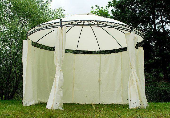 Pawilon ogrodowy okrągły - brązowy, 3,5 m - w tym ścianki boczne do całkowitego zamknięcia. jest atrakcją każdego ogrodu. Sprawdzi się on nie tylko na większe uroczystości na dworze, ale również jako miejsce gdzie możesz odpoczywać na co dzień! Zachwyca prostotą i elegancją. Na szczycie pawilonu znajduje się kryty otwór wentylacyjny. Nogo mają otwory, dzięki czemu przymocowanie konstrukcji pawilonu jest łatwe.