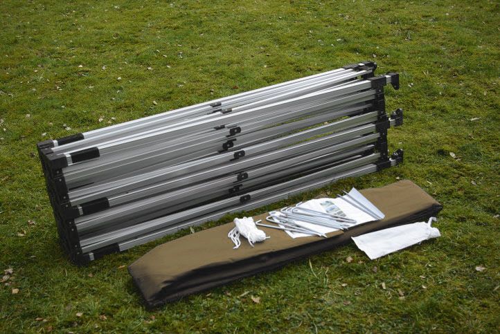 Pawilon ogrodowy rozkładany - beżowy 3 x 6 m, boczne ściany z oknami. Pawilon ogrodowy rozkładany automatycznie, wodoodporny 3 x 6 m , beżowy. Ochrona przed deszczem czy silnym działaniem promieni słonecznych. Pawilon ogrodowy to świetne miejsce do tego, aby korzystając ze sprzyjającej aury dla większej liczby ludzi np. uroczystości, targi, festiwale i wesela. Dzięki zastosowaniu odpowiednich mechanizmów pawilon w szybkim tempie można złożyć i rozłożyć. Niewielkie wymiary po złożeniu. Teleskopowe nogi wykończone stopkami które można przytwierdzić do podłoża. Pawilon zawiera wszystkie ścianki, co pozwala na zamknięcie go dookoła.