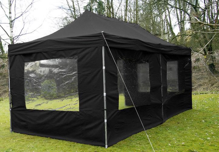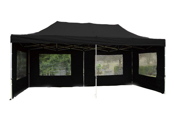 Pawilon ogrodowy rozkładany - czarny 3 x 6 m, boczne ściany z oknami