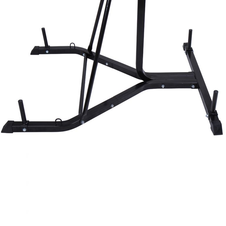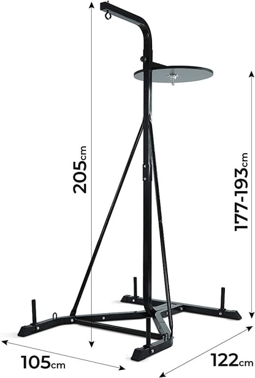 Ten stojak 2w1 wykonany jest z wytrzymałej stali z mocną i stabilną podstawą i jest przeznaczony do zawieszania worków treningowych i speedballi.