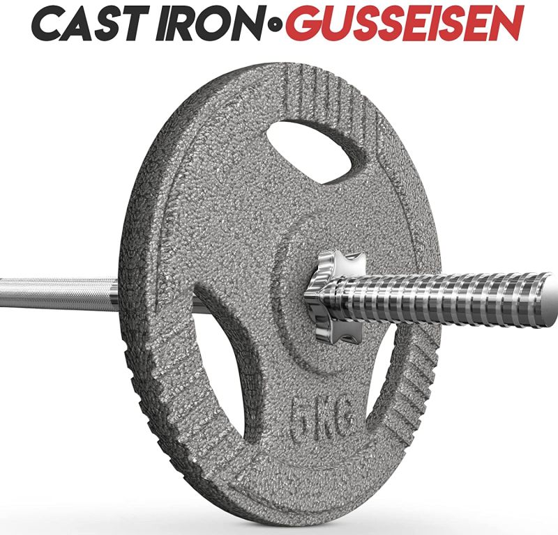 Dzięki swojemu kształtowi i radełkowanej rękojeści, żeliwny obciążenie o wadze 5 kg jest łatwy do uchwycenia i staje się nieodzownym elementem podstawowego wyposażenia każdej domowej siłowni. Za pomocą tych dysków obciążających i odpowiedniego drążka można wykonywać różne ćwiczenia siłowe na górną i dolną część ciała. Obciążnik posiada otwór o średnicy 31 mm, który jest odpowiedni dla większości sztangi. Proces odlewania naszych ciężarków gwarantuje długą żywotność i trwałość ciężarków.