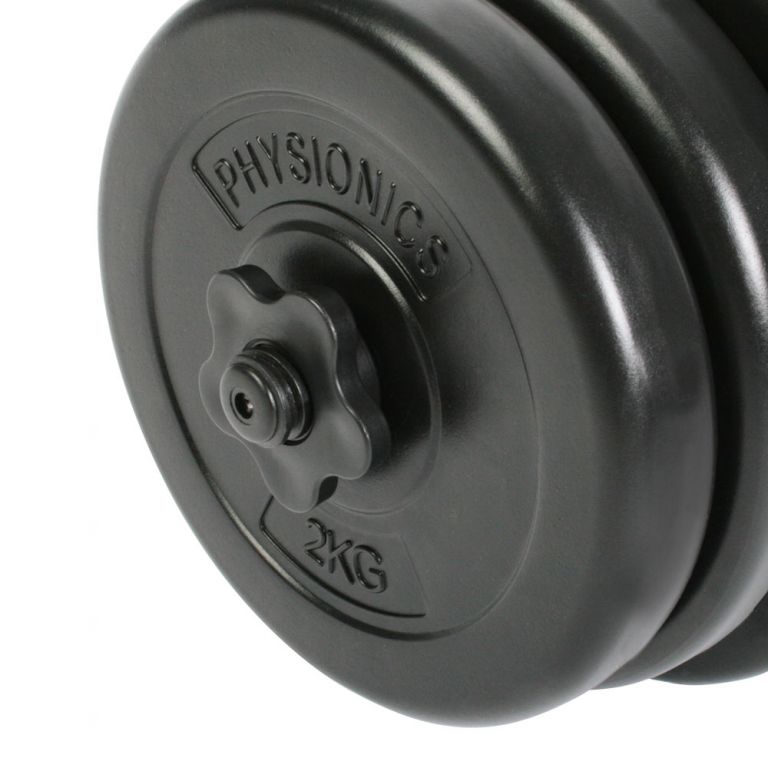 Trening z hantlami idealnie nadaje się do szeregu ćwiczeń, które poprawią Twoją sylwetkę i korygują nierównowagę mięśniową. Zestaw zawiera dwa ergonomicznie ukształtowane hantle oraz dwanaście obciążników i waży łącznie 40 kg (2 x 20 kg). Sztanga ma antypoślizgową, prążkowaną powierzchnię chwytu, dzięki czemu możesz skoncentrować się na podnoszeniu ciężarów podczas treningu, a gwiaździste zamki zabezpieczają płyty obciążające. Obciążenie są z plastikową osłoną.