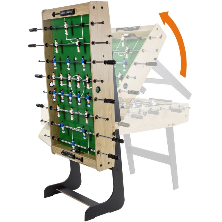 Zaletą jest fakt, że można je szybko i łatwo zmontować jak i zdemontować, dzięki czemu zajmują niewiele miejsca podczas transportu. Piłkarzyki idealnie nadają się dla początkujących, zwłaszcza dzieci. Korpus piłkarzyków wykonany jest z wysokogatunkowegro drewna i wysokiej jakości utwardzanej płyty MDF, pokryty warstwą laminatu - odporny na ścieranie. Otwory z tyłu bramek do wyciągania piłeczki po strzeleniu gola. Jest w pełni stabilny również przy mocnej i intensywnej grze. Produkt charakteryzuje się wysoką dbałością o detale i solidnością. Stabilna kontstrukcja zapewni pewność podczas zabawy. Podwyższone narożniki boiska - aby piłka nie zatrzymywała się w czasie gry.