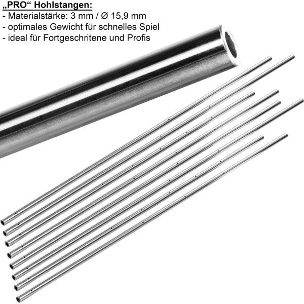 Model „PRO" z serii TUNIRO waży 110 kg i jest wyposażony w nóżki (z gumą) z regulacją wysokości. Uchwyty są idealnie ergonomiczne, a uchwyty są antypoślizgowe nawet dla spoconej dłoni. Kije do gry są bezpieczne i nie dochodzi do przypadkowego przytrzaśnięcia palca między rączką a krawędzią piłki. Aby zapobiec wgnieceniom pola gry, pola gry o grubości już 24 mm zostały dodatkowo wzmocnione od spodu żelaznym krzyżem. Nogi z okrągłej blachy są puste w środku, dzięki małej powierzchni podparcia mają bardzo dobrą stabilność.
