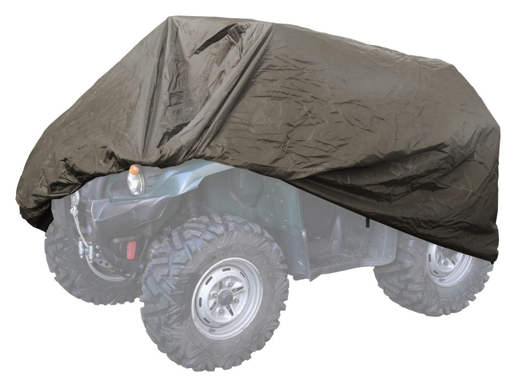 Oddychająca plandeka na quad. Chroni przed wilgocią i mrozem, odporna na zabrudzenia. Chroni cały quad przed warunkami atmosferycznymi i promieniami UV. Łatwe mocowanie plandeki - zakłada się ją tylko na quad, na dole część z wszytą gumą jest mocowana za pomocą odpowiednich zagięć. Przednia i tylna część plandeki są wyposażone w stałe pętle, które można wykorzystać do jeszcze mocniejszego zamocowania plandeki, np. za pomocą linek bungee itp.
