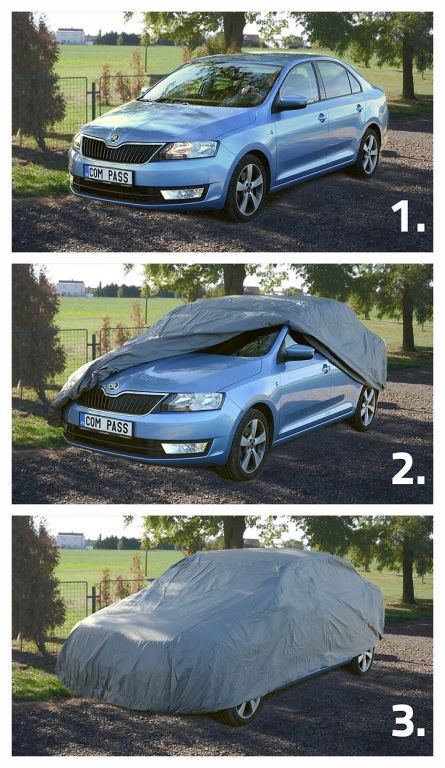 Plandeka ochronna na całe auto, wykonana z bardzo wytrzymałego wodoodpornego materiału. Wnętrze pokryte jest warstwą delikatną dla lakieru pojazdu.