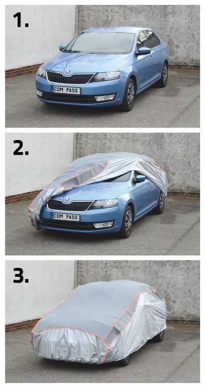 Górna część jest wzmocniona wzmocnionym materiałem, który może amortyzować uderzenia gradu podczas gradu i tym samym zapobiegać uszkodzeniom pojazdu. Łatwe mocowanie plandeki - zakłada się ją tylko na samochód, część z wszytą gumą zapinana jest od dołu odpowiednimi zakładkami karoserii/zderzaka a przednia i tylna część plandeki jest dokładnie spięta wszytymi paskami z sprzączki. Absorpcja przez plandekę uderzenia gradu jest wysoce skuteczna do wielkości gradu ok. 12 mm przy prędkości uderzenia do 74 km/h. W przypadku przekroczenia tych wartości efekt ochronny nie jest gwarantowany.