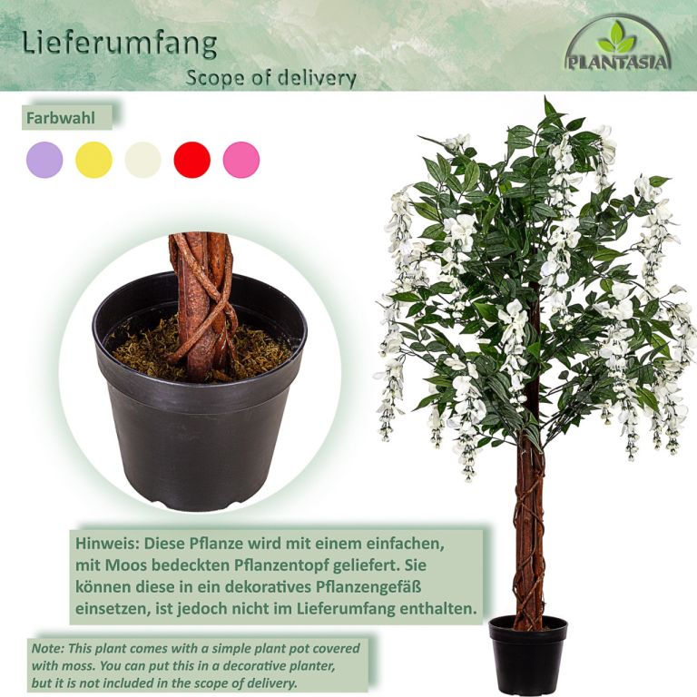 PLANTASIA Sztuczne drzewko, 120 cm, Wisteria róż