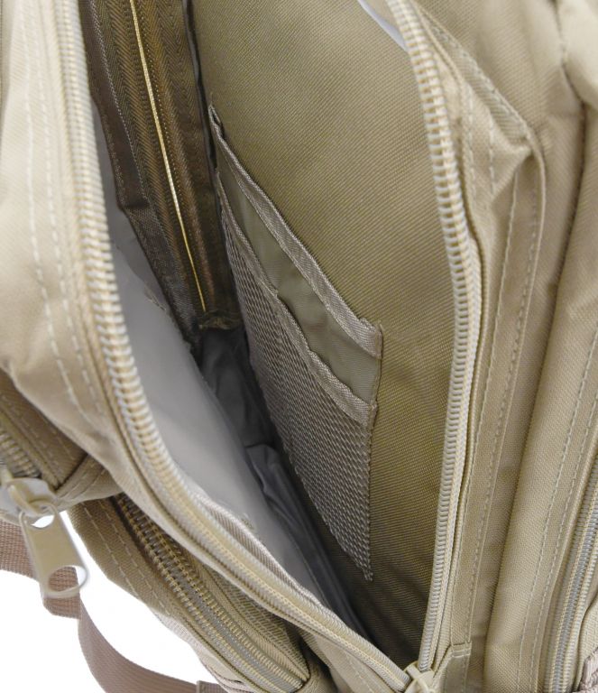Z przodu plecaka znajduje się system Molle - system służący do dołączania innych akcesoriów do wyprawy. Każda kieszeń jest zabezpieczona solidnym dwukierunkowym zamkiem. Wewnętrzne kieszenie i siatkowa kieszeń są zakończone pętlami do bezpiecznego przenoszenia małych przedmiotów. Jedna z wewnętrznych kieszeni ma klasyczny zamek, a tylna wentylowana kieszeń jest zapinana na rzep.