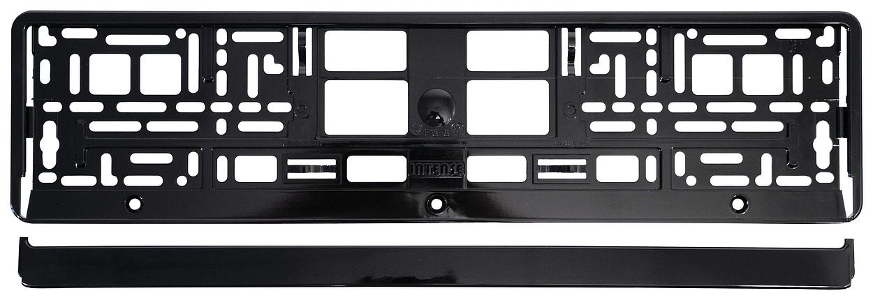Ramka wyposażona jest w listwę dolną z zamkami blokującymi oraz szereg otworów montażowych, dzięki czemu jej mocowanie jest naprawdę uniwersalne. Instrukcja montażu: Oddzielić listwę dolną w miejsce listew (jeśli jest częścią podstawy). Zamontuj ramkę w pojeździe za pomocą odpowiednich śrub. Wsuń tablicę rejestracyjną na spód podkładki. Używając zamków, zatrzaśnij dolny pręt w podstawie, tak aby mocno przytrzymywał tablicę rejestracyjną w podstawie.