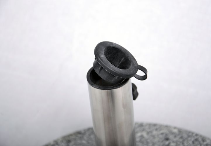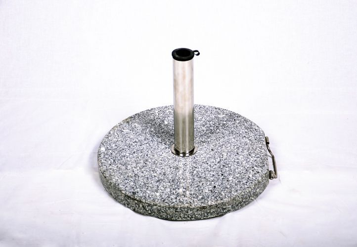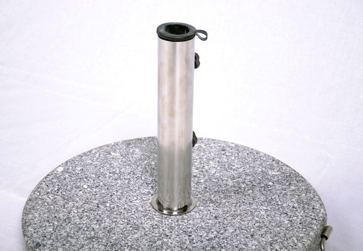 Podstawa pod parasol wykonana z polerowanego granitu w połączeniu z nierdzewną stalą. Jest bardzo stabilna z kółeczkami do przesuwania. Niezbędna podstawa do parasola ogrodowego. Nadaje się do parasoli o średnicy do 4 metrów.
