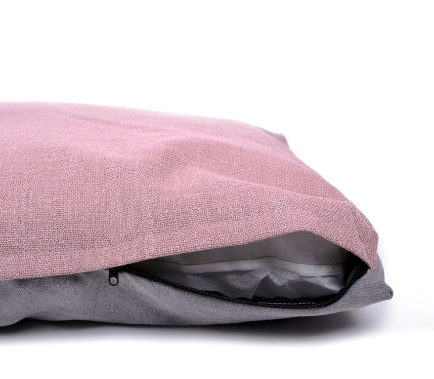 Luksusowa dwustronna poduszka dla psa. Z jednej strony wytrzymały i mocny różowy materiał. Druga strona poduszki wykonana jest z przyjemnej szarej tkaniny. Poduszka posiada zamek błyskawiczny. Można prać ręcznie lub w pralce na delikatnym programie, maksymalnie 30°C. Nie czyścić chemicznie, nie suszyć w suszarce bębnowej.