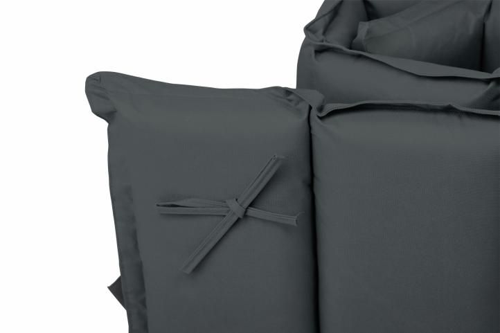 Poduszka jest przymocowana za pomocą 2 pasków na macie i można ją w razie potrzeby złożyć. Dwa paski mocujące z tyłu maty mocują matę do leżaka.