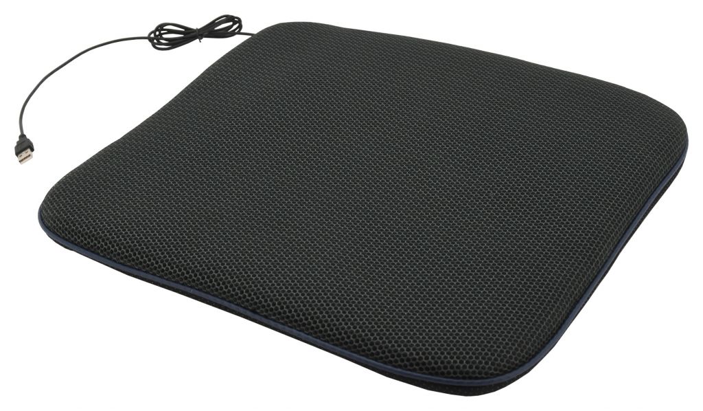 Poduszka wykonana z bardzo przyjemnego materiału, z wentylatorem i zintegrowanym czujnikiem, który włącza wentylację w momencie obciążenia (siedzenia). Produkt jest idealnym dodatkiem w gorących porach roku. Zasilanie zapewnia kabel USB. Wystarczy więc położyć poduszkę na krześle w biurze, w pojeździe lub w innym miejscu z dostępem do gniazda USB i cieszyć się przyjemnym chłodzeniem. Produkt podwyższający może być również stosowany w pojazdach z siedzeniami z wbudowaną poduszką powietrzną.