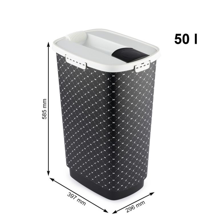 Pojemnik na karmę CODY 50 L, plastik, czarno-biały nadruk