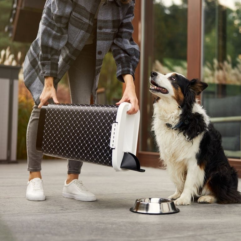 Wysuwany dozownik w pokrywie - dla łatwego dozowania i opróżniania paszy.