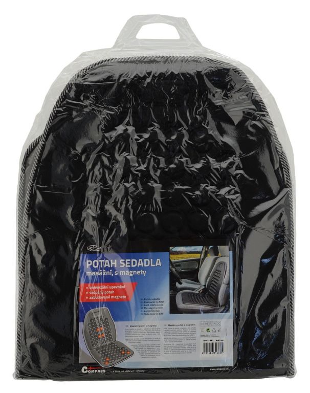 Magnesy znajdują się w siedzeniu i tylnej części pokrowca. Ich działanie pomaga zmniejszyć ból pleców i kręgosłupa podczas długich sesji. Dzięki swojej konstrukcji pokrowiec jest przewiewny. Jeśli założysz pokrowiec tylko na siedzisko (bez mocowania go do oparcia siedziska), pokrowiec może być również używany na siedzeniach z wbudowaną boczną poduszką powietrzną bezpośrednio w oparciu.