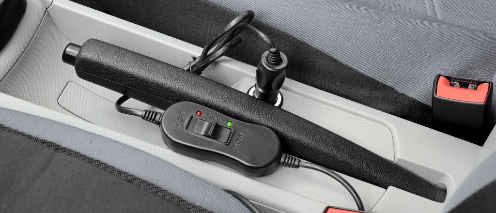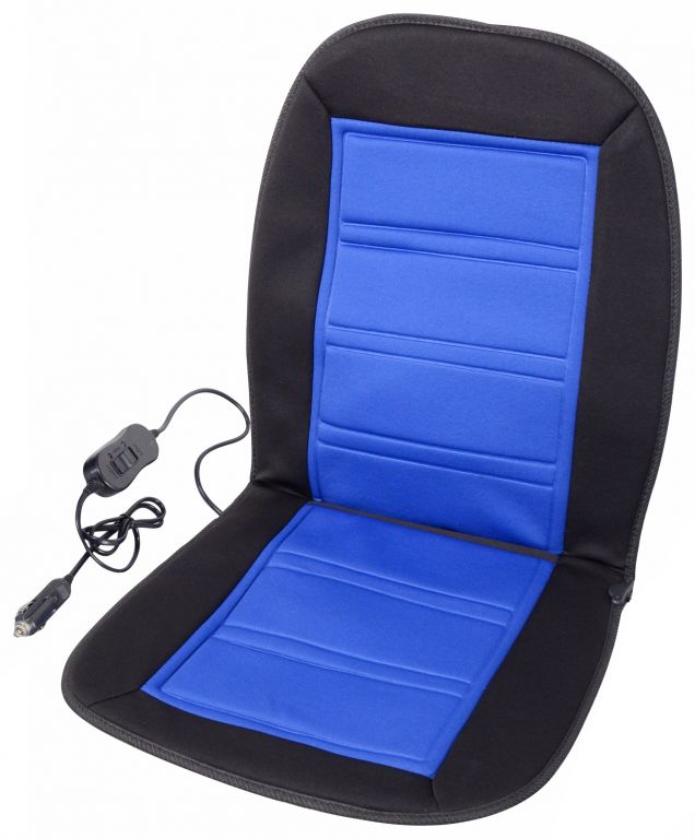 Uniwersalny podgrzewany pokrowiec na fotel, wzmocniona konstrukcja, zasilanie ze złączem 12V do gniazda zapalniczki samochodowej.