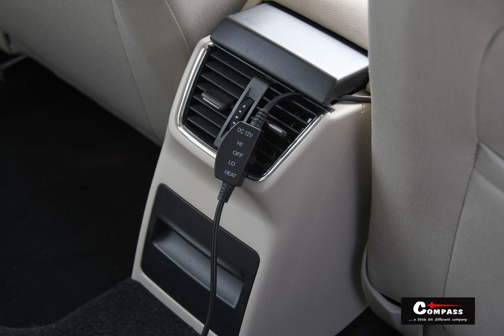 Podłączenie do standardowego gniazda zapalniczki samochodowej ze złączem 12V. Posiada uniwersalny system mocowania, można go przymocować do najczęściej używanych tylnych foteli samochodowych. Produkt wyposażony jest we wbudowany termostat i sterowanie, za pomocą którego można wybrać niski (LO) lub wysoki (HI) tryb grzania osłony. Podkładka jest ogrzewana na całej swojej powierzchni, co pozwala na luksusowe ogrzewanie pasażerów na tylnych siedzeniach.