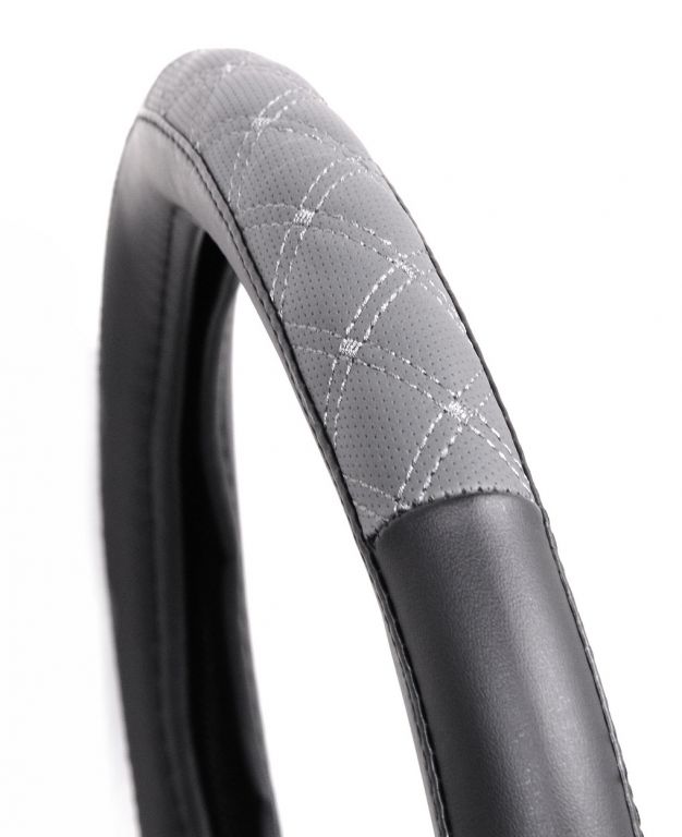 Ten uniwersalny pokrowiec idealnie dopasowuje się do kierownicy i skutecznie zapobiega ślizganiu się dłoni. To jeden z najczęstszych powodów, dla których kierowcy potrzebują pokrowca na kierownicę. Nie tylko chroni go przed zużyciem, ale także tłumi wibracje i nie przegrzewa się w bezpośrednim świetle słonecznym. Co ponownie przyczynia się do zwiększenia komfortu jazdy. Elegancki design dodatkowo podkreślają wzorzyste szare nici.