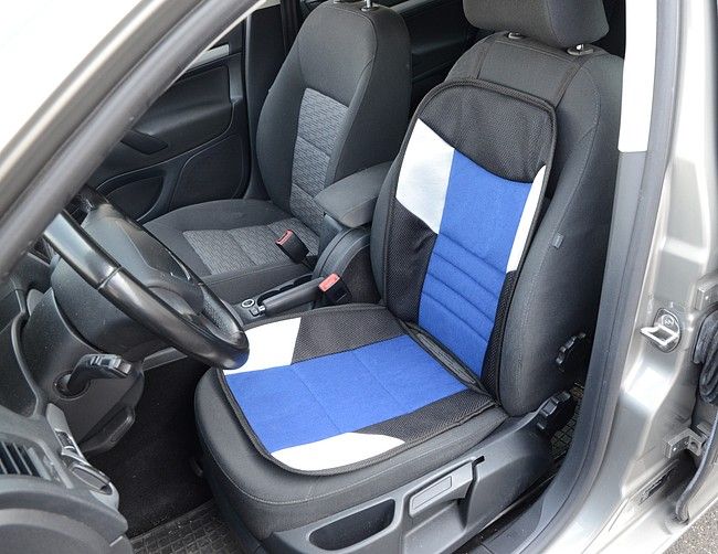 Pokrowiec na fotel samochodowy o wzmocnionej konstrukcji. Pokrowiec może być również stosowany na siedzeniach, które mają wbudowaną boczną poduszkę powietrzną bezpośrednio w oparciu przednich siedzeń.