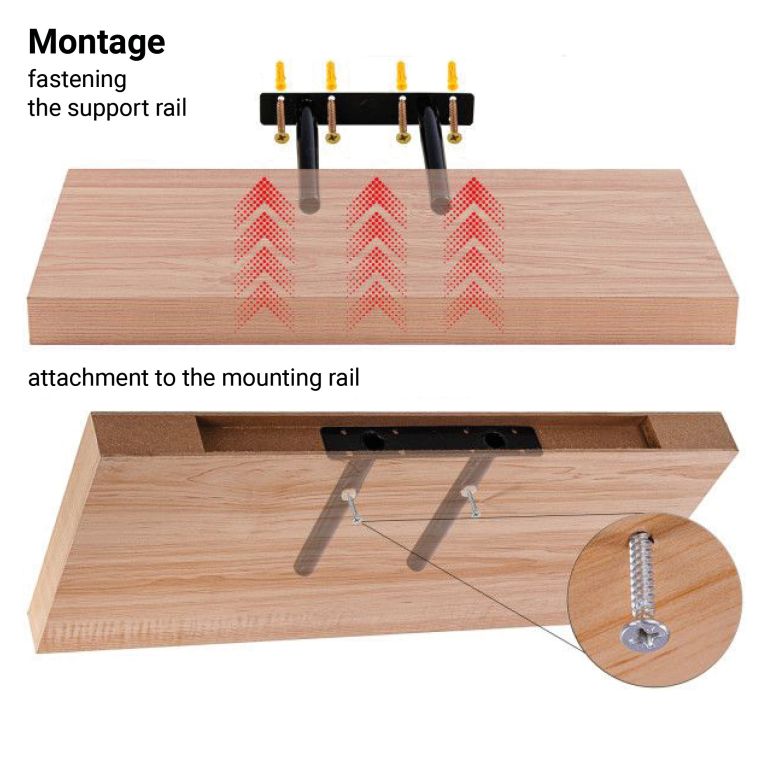 Rzucająca się w oczy nietradycyjna półka imitująca unoszenie się półki, pozornie bez mocowania. Nadaje się do każdego pomieszczenia.