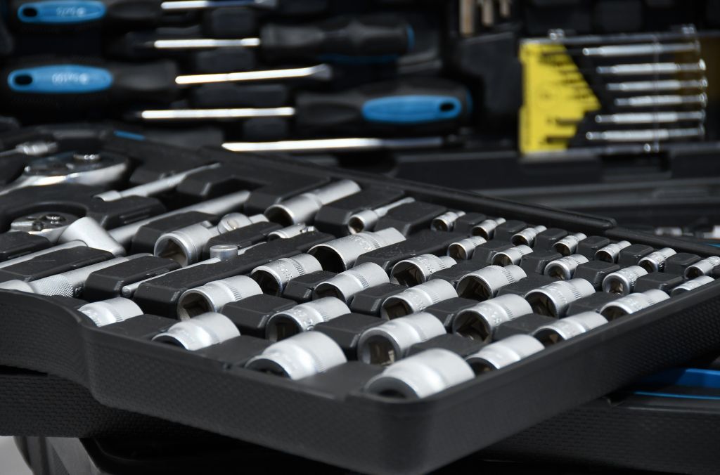Profesjonalna walizka wyposażona w wysokiej jakości narzędzia, w tym klucze zapadkowe z bardzo drobnym mechanizmem i zapięcia, rozmieszczone w przejrzysty sposób w ustalonych pozycjach. Dolna płyta zawiera młotek, miernik, szczypce samozaciskowe i do ściągania izolacji, łączniki i inne przydatne urządzenia do różnych zadań. Wstaw płytę z najczęściej stosowanymi szczypcami i wysokiej jakości, chromowo-wanadowymi kluczami zapadkowymi z bardzo drobnym uzębieniem 72. W pokrywie znajdują się izolowane, klasyczne śrubokręty zegarmistrzowskie, a także klucze imbusowe, bity itp. Ponadto w wkładce umieszczono wysokiej jakości grzechotki, nasadki, elastyczne nasadki, pręty T oraz różne wkładki przedłużające ze stali chromowo-wanadowej. Z tyłu obudowy znajduje się teleskopowy uchwyt i kółka ułatwiające obsługę.