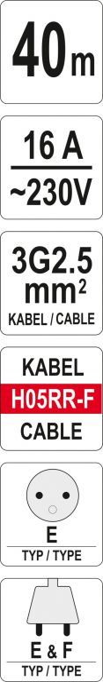 Wysokiej jakości izolowane przewody miedziane do podłączenia do 4 urządzeń jednocześnie. Kabel H05RR-F jest odporny nie tylko na uszkodzenia mechaniczne, ale także chemikalia (oleje, benzyna, alkohole etylowe, metyl itp.). Gniazdo jest wyposażone w gumową wtyczkę, aby chronić przedłużacz przed brudem i wilgocią.