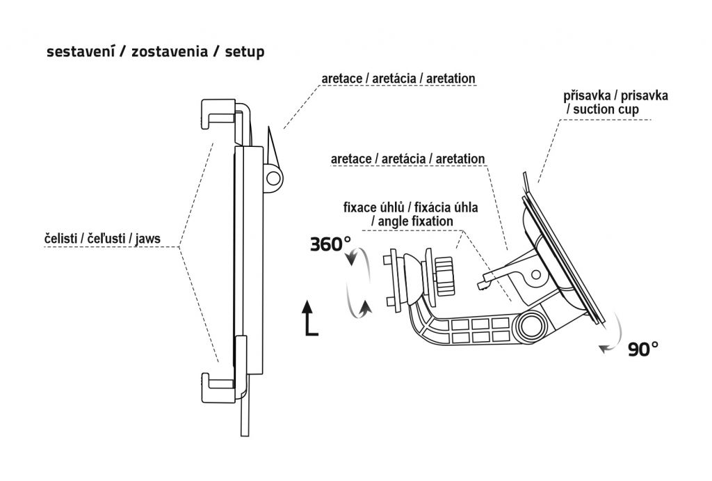 Uchwyt na tablet z bardzo mocną przyssawką. Idealny do montażu na stole, szkle lub płaskiej nieporowatej powierzchni. Zakres chwytu pozwala na zamontowanie tabletów na wysokości 7"-10" lub szerokości do 15". Praktycznie dowolną pozycję można ustawić za pomocą 3 przycisków (pokrętło sterujące + przyciski blokujące).