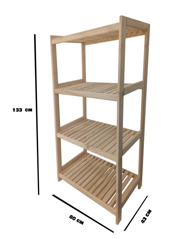 Regał drewniany z 4 półkami, 133 x 80 x 43 cm