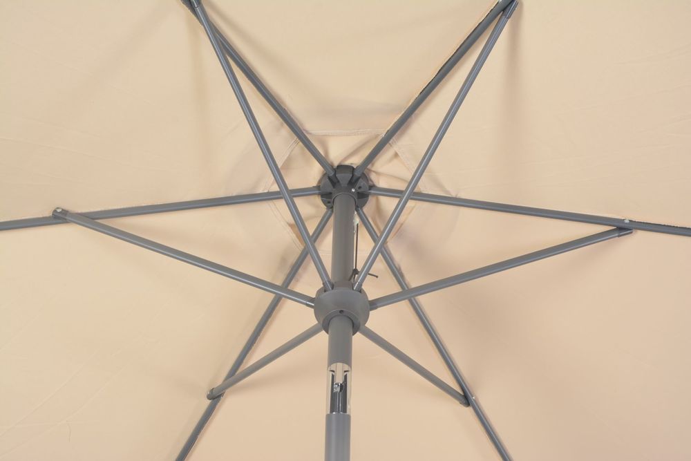 Sześcioramienny parasol uchylny o nowoczesnym designie i solidnej metalowej konstrukcji. Otwierany za pomocą designerskiego uchwytu, pokrowiec posiada powłokę, dzięki czemu ochroni Cię przed lekkim deszczem. BEZ PODSTAWY
