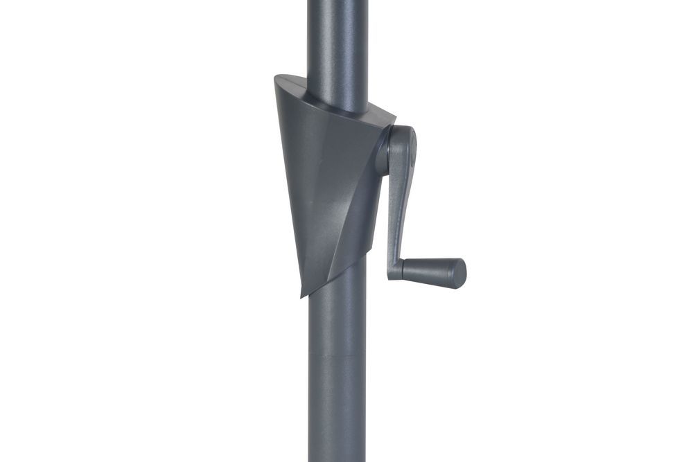 Sześcioramienny parasol uchylny o nowoczesnym designie i solidnej metalowej konstrukcji.