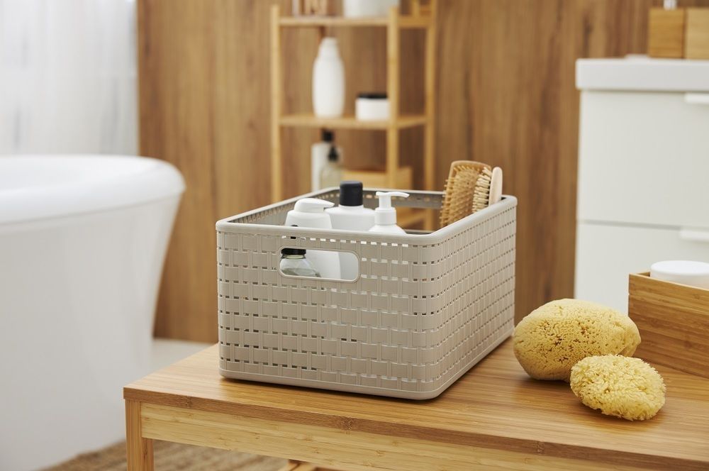 Plastikowe pudełko do przechowywania A4 w stylu rattanu ma wiele zastosowań w całym domu.