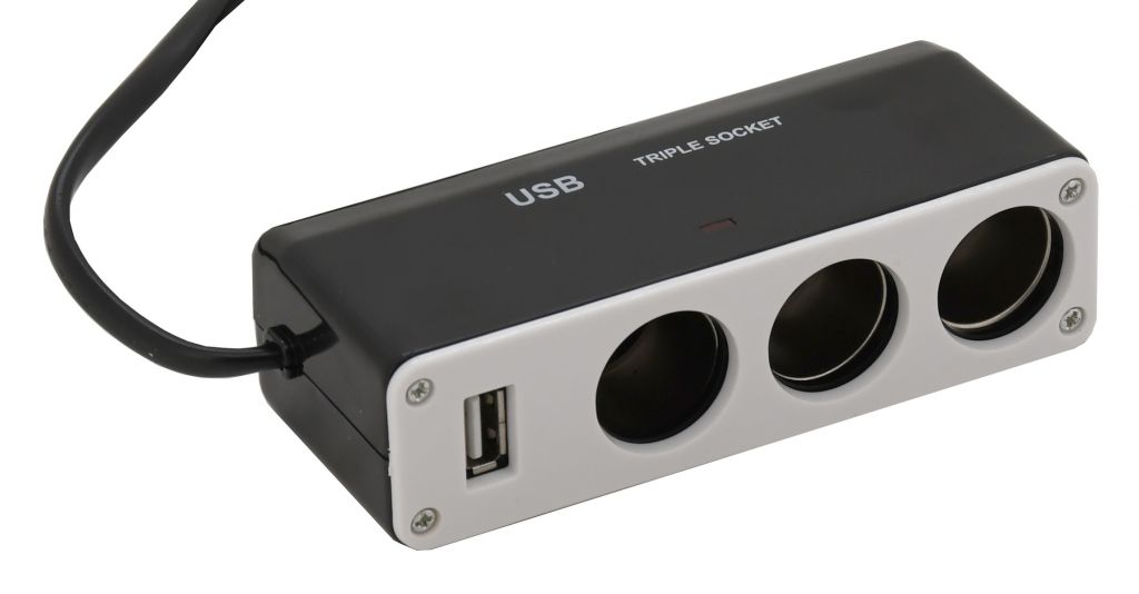 Gniazdo zapalniczki 12/24 V ze złączem USB, umożliwia podłączenie wielu urządzeń do jednego standardowego gniazda zapalniczki w samochodzie.