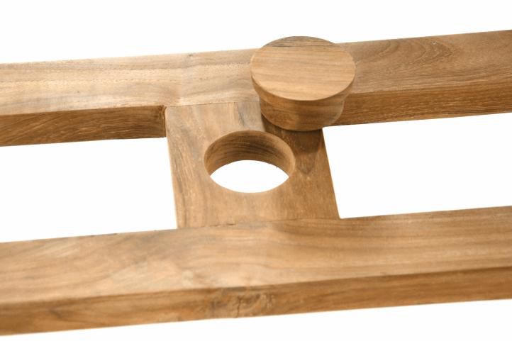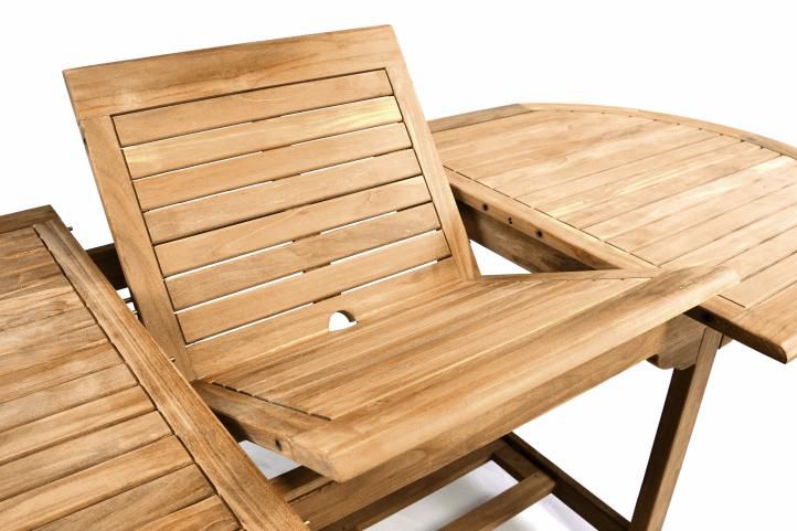 Solidny, masywny stół z drewna tekowego o prostym, estetycznym wyglądzie. Będzie pasował do każdego pomieszczenia. Po rozłożeniu stołu można zamieścić parasol na środku. Teak to wyjątkowe drewno egzotyczne, które dzięki dużej zawartości naturalnych olejów i kwasu krzemowego charakteryzuje się bardzo wysoką trwałością, szczególnie w wilgotnym i nieprzyjaznym innym gatunkom drewna środowisku. Jest odporne na działanie czynników atmosferycznych oraz grzybów.