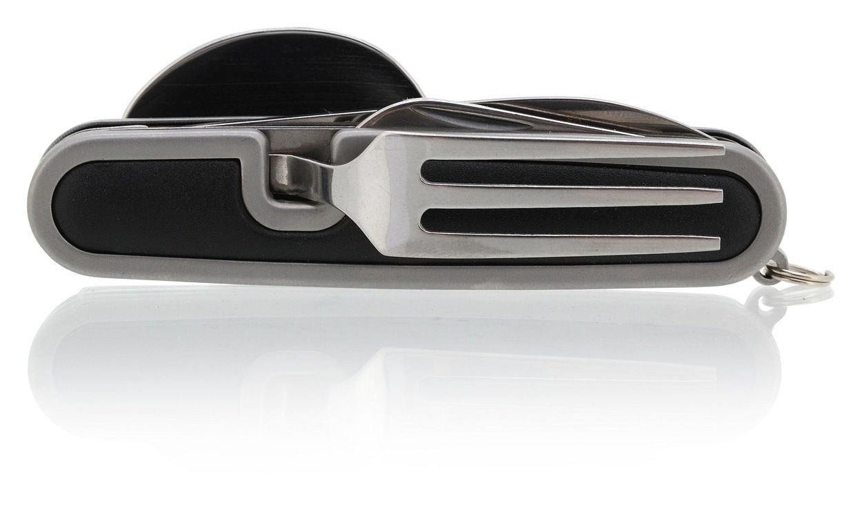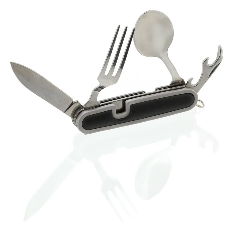 Pierwsza część składa się z widelców, otwieraczy do puszek i kapsli, druga część składa się z łyżki i samego ostrza noża.