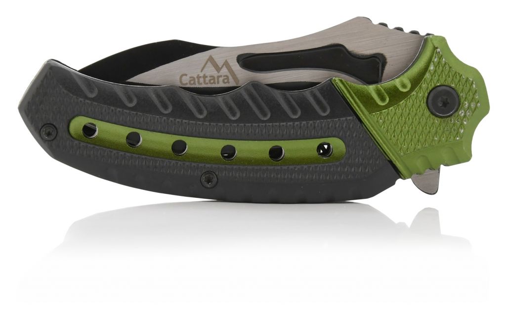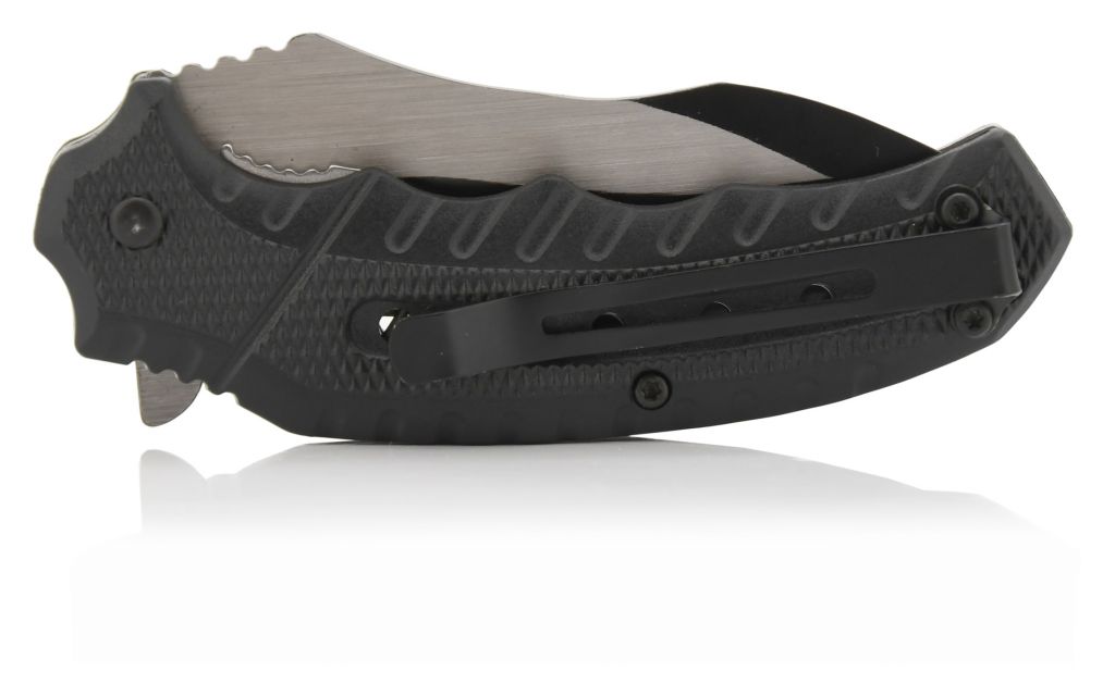 Ostrze noża wykonane jest ze stali na sztućce 420SS. Materiał jest szczególnie odpowiedni do niekorzystnych środowisk, gdzie wyróżnia się odpornością na korozję. Dzięki występowi na górnej części ostrza, przechodzącemu przez rękojeść, możliwe jest szybkie otwarcie noża poprzez pociągnięcie kciukiem. Nóż wyposażony jest w zabezpieczenie, które sterowane jest bocznym ruchem kciuka w dolnej części rękojeści. Rękojeść uzupełniona jest klipsem do przymocowania jej do krawędzi kieszeni, paska itp. Rączki wykonane są z wysokiej jakości aluminium i wytrzymałego tworzywa sztucznego.