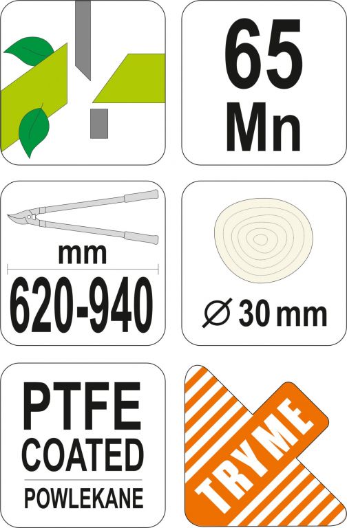 Ręczne nożyczki teleskopowe o skośnym cięciu. Przeznaczone są do cięcia gałęzi za pomocą antypoślizgowego uchwytu w celu bezpiecznego trzymania.