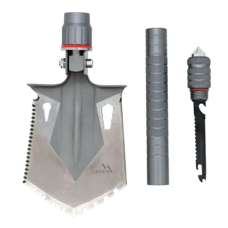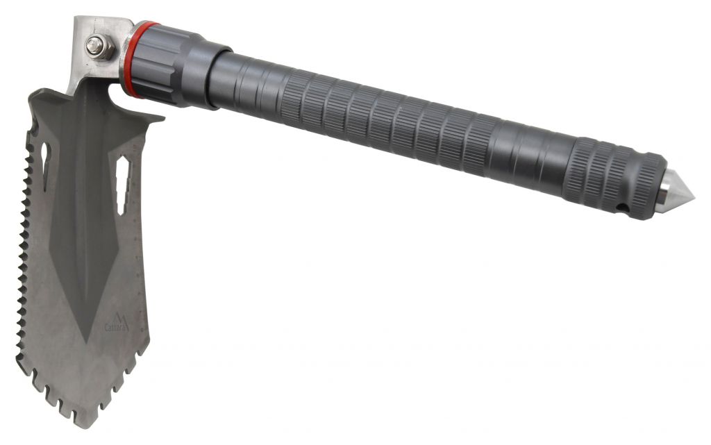 Saperka może być używana w konwencjonalny sposób jako łopata, ale wciąż jest wyposażona w klucz, wyciąganie do gwoździ, piłę i może być używana jako motyka. Najbardziej oczywista jest włócznia z końcem do awaryjnego wybijania okien. W schowku między akcesoriami znajdziesz nóż z piłą i otwieraczem. Samo ostrze jest praktyczne i łatwe w montażu, po przykręceniu części rękojeści, wystarczy wybrać narzędzie, jego ułożenie i jedno zablokowanie nakrętką na rękojeści. Ponadto uchwyt jest wyposażony w antypoślizgową powierzchnie - wyżłobienia zapewniającą wygodny i bezpieczny chwyt.