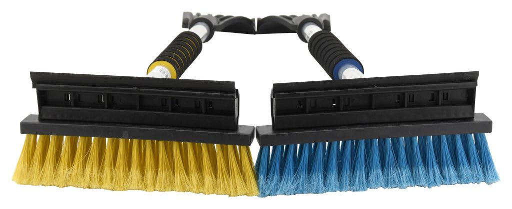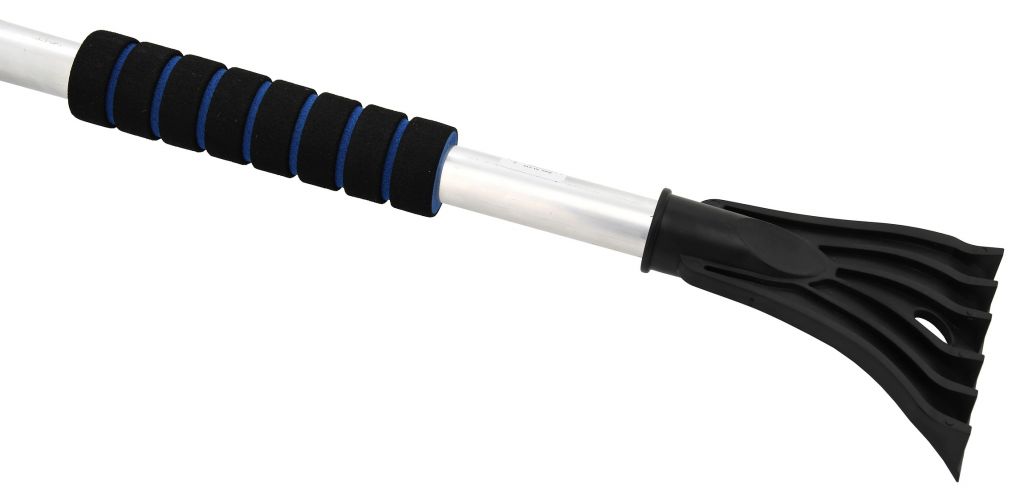 Jeden koniec jest wyposażony w miotłę i gumową szpatułkę. Na drugim końcu rękojeści znajduje się skrobak. Aluminiowa konstrukcja rękojeści jest wyposażona w piankowy uchwyt zapewniający wysokiej jakości i wygodny chwyt. Produkt oferowany w połączeniu koloru niebieskiego i żółtego z czarnym.