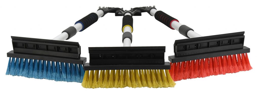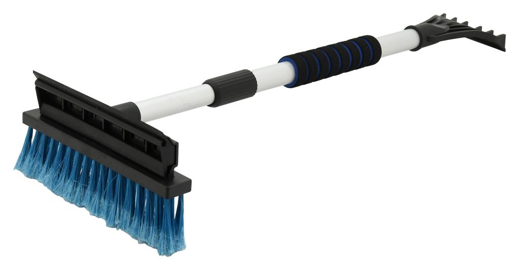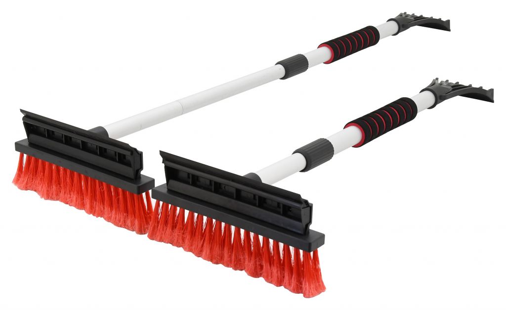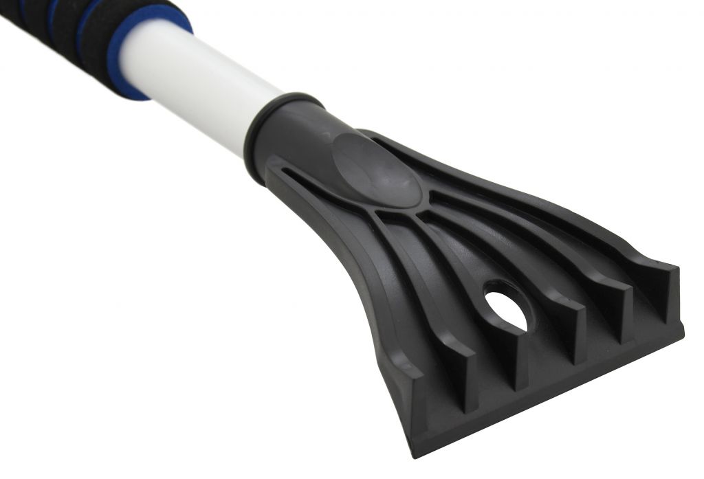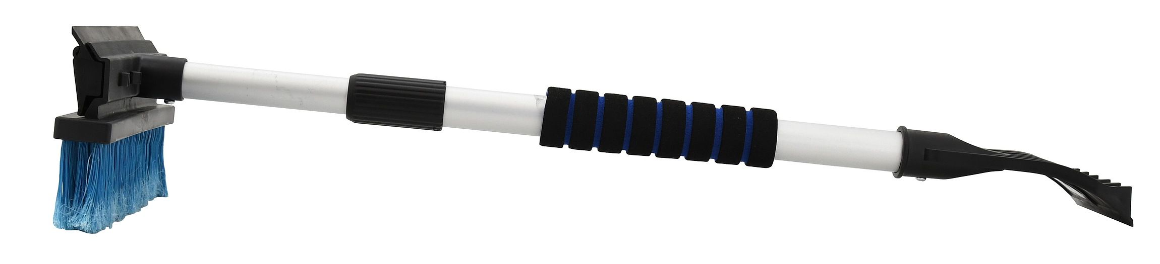 Skrobak z miotłą teleskopową o długości 60 - 90 cm. Jeden koniec jest wyposażony w miotłę o szerokości 24 cm i gumową szpatułkę o szerokości 20 cm z drugiej strony. Na drugim końcu rękojeści znajduje się skrobak 10 cm. Uchwyt teleskopowy można wysunąć lub wsunąć po obróceniu, po ustawieniu wymaganej długości należy obrócić w przeciwnym kierunku, aby zabezpieczyć. Aluminiowa konstrukcja rękojeści jest wyposażona w piankową rękojeść zapewniającą wysokiej jakości i wygodny chwyt. Produkt oferowany w zestawieniach koloru niebieskiego, żółtego i czerwonego z czarnym.