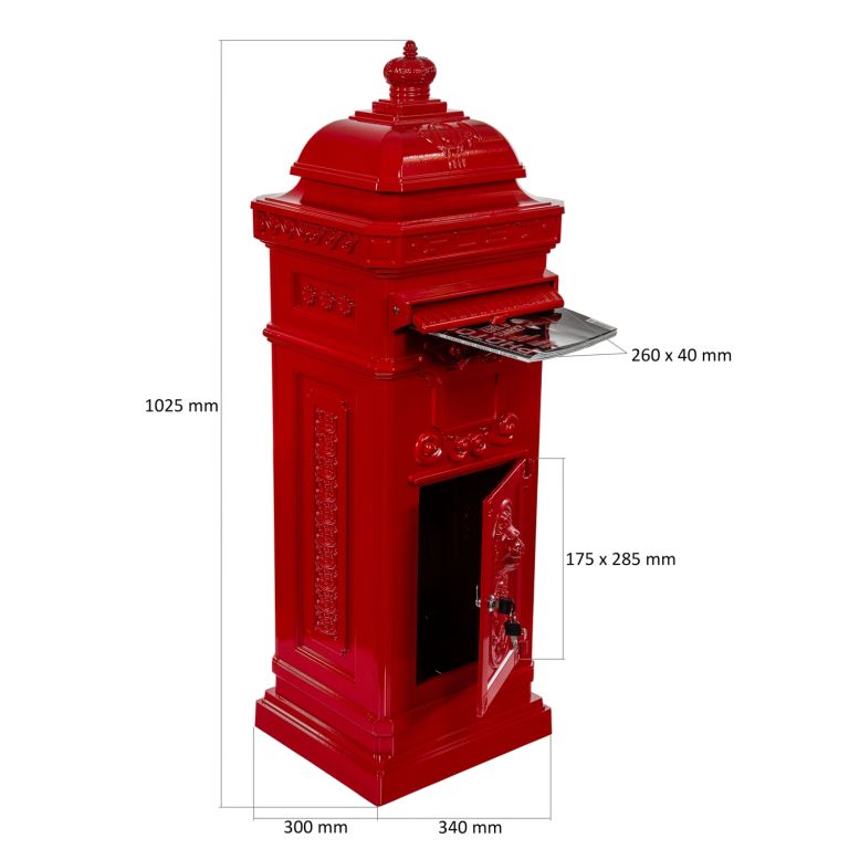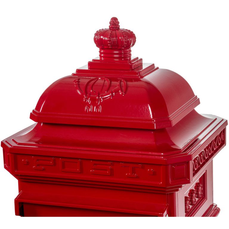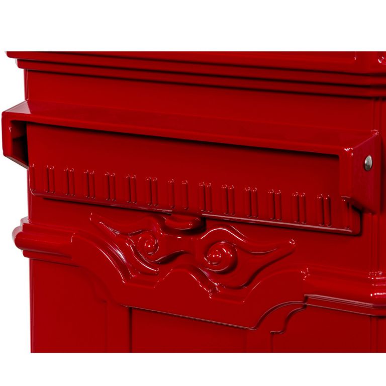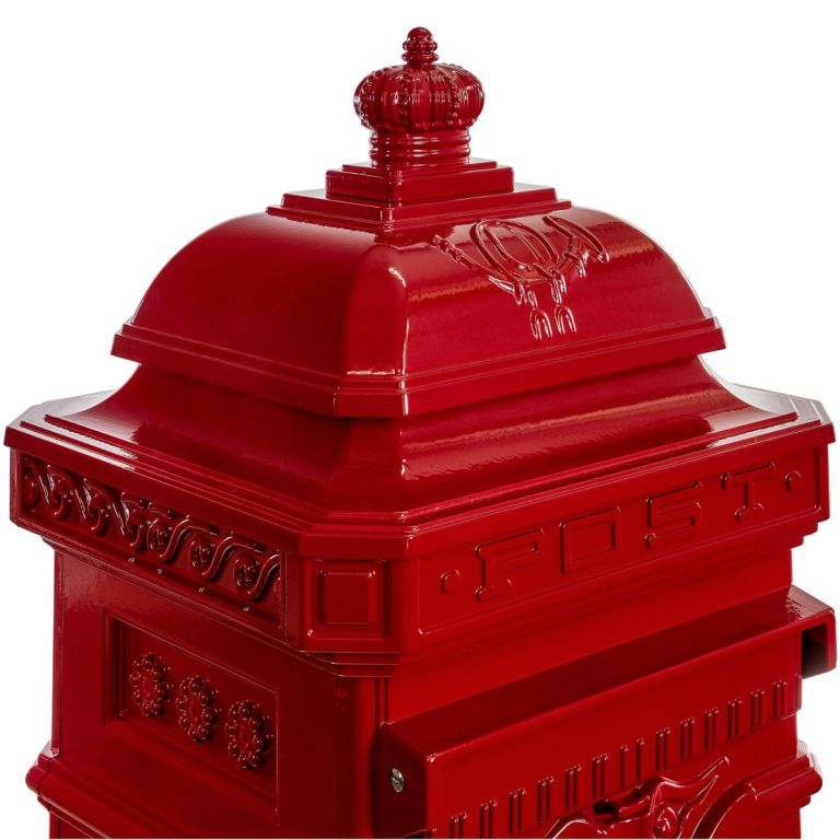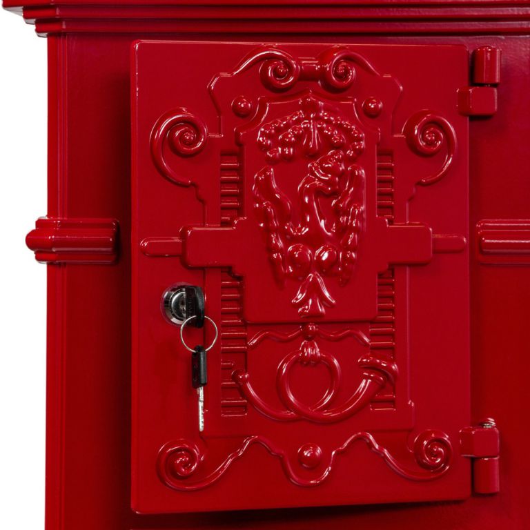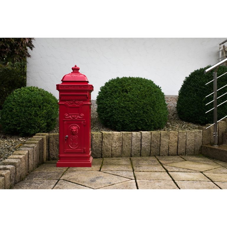 Stojąca skrzynka pocztowa na przesyłki formatu A4 gazety i czasopisma, o wyglądzie kolumny w stylu antycznym. Wykonana z odlewanego aluminium, jest wytrzymała i odporna na rdzę. Zamykana na zamek, ma zakrywany otwór na listy. Piękna ozdoba do Twojego domu.