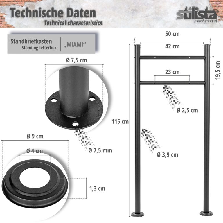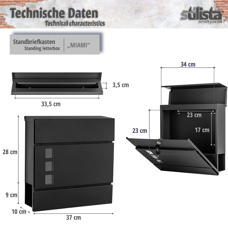 Skrzynka na listy Miami stojąca, antracyt, dwie nogi