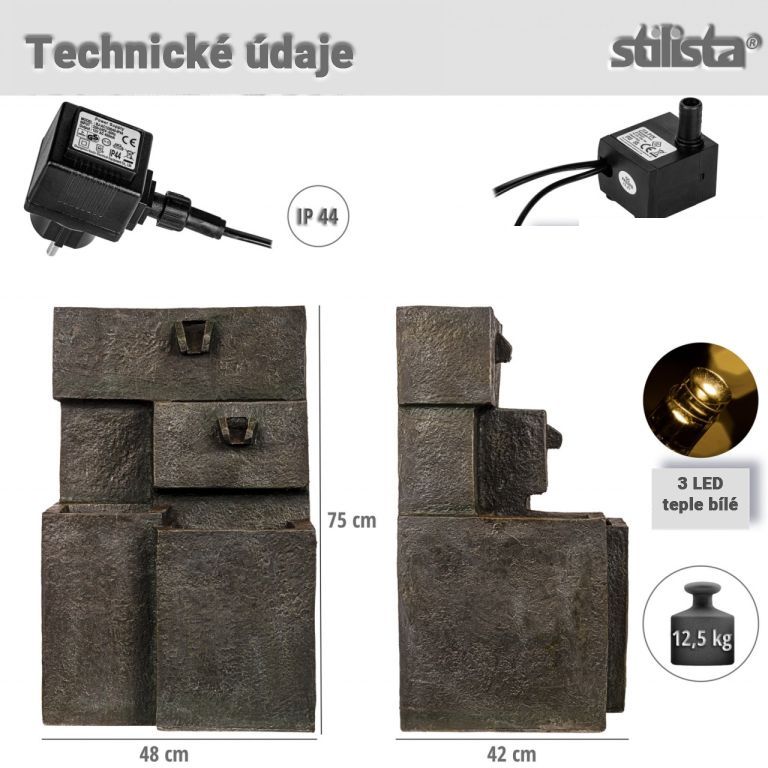STILISTA Fontanna ogrodowa, 48 x 42 x 76 cm, schody wodne