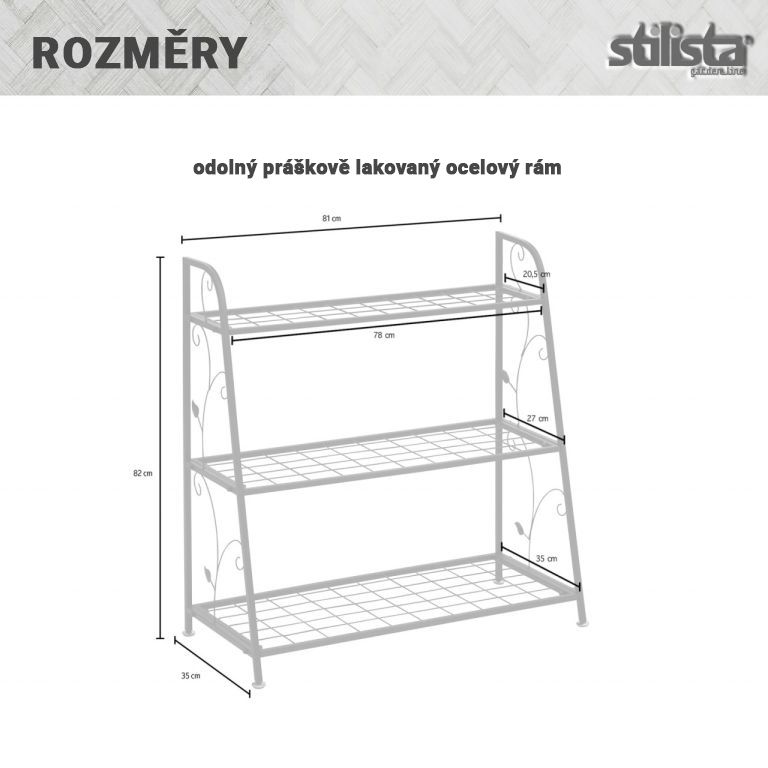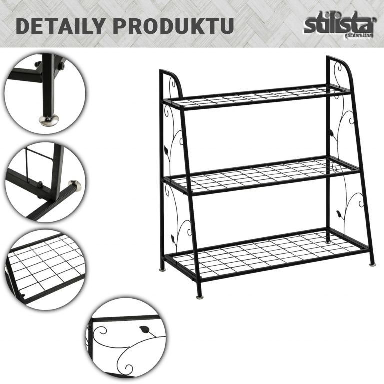 Nasz stojak na kwiaty wykonany jest z wytrzymałej stalowej ramy malowanej proszkowo. Klasyczne wzornictwo półek dopasuje się stylowo do każdego wnętrza i na zewnątrz. Regały na rośliny zapewniają dużo miejsca na rośliny o różnej wielkości, a także mogą służyć jako półki do przechowywania np. elementów dekoracyjnych.