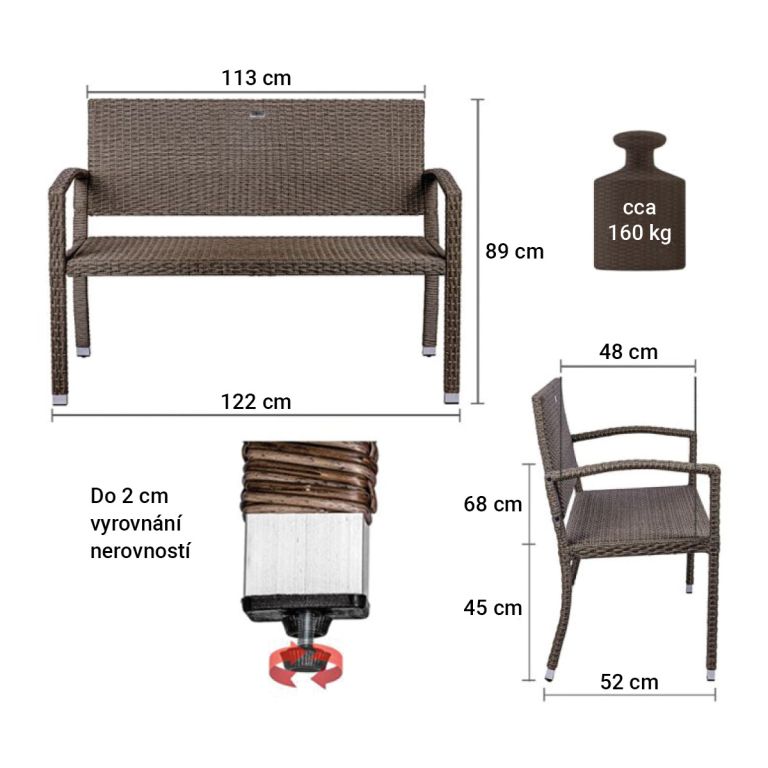 Nasza ławka nadaje się na taras, ogród, oranżerię czy balkon i pasuje do każdego wnętrza. Solidna stalowa konstrukcja pokryta jest odpornym na warunki atmosferyczne i promieniowanie UV sznurkiem z polirattanu, dzięki czemu nasza ławka ogrodowa jest idealna do użytku na zewnątrz. Dzięki powierzchni odpornej na zabrudzenia ławka jest łatwa w utrzymaniu czystości i wodoodporna.