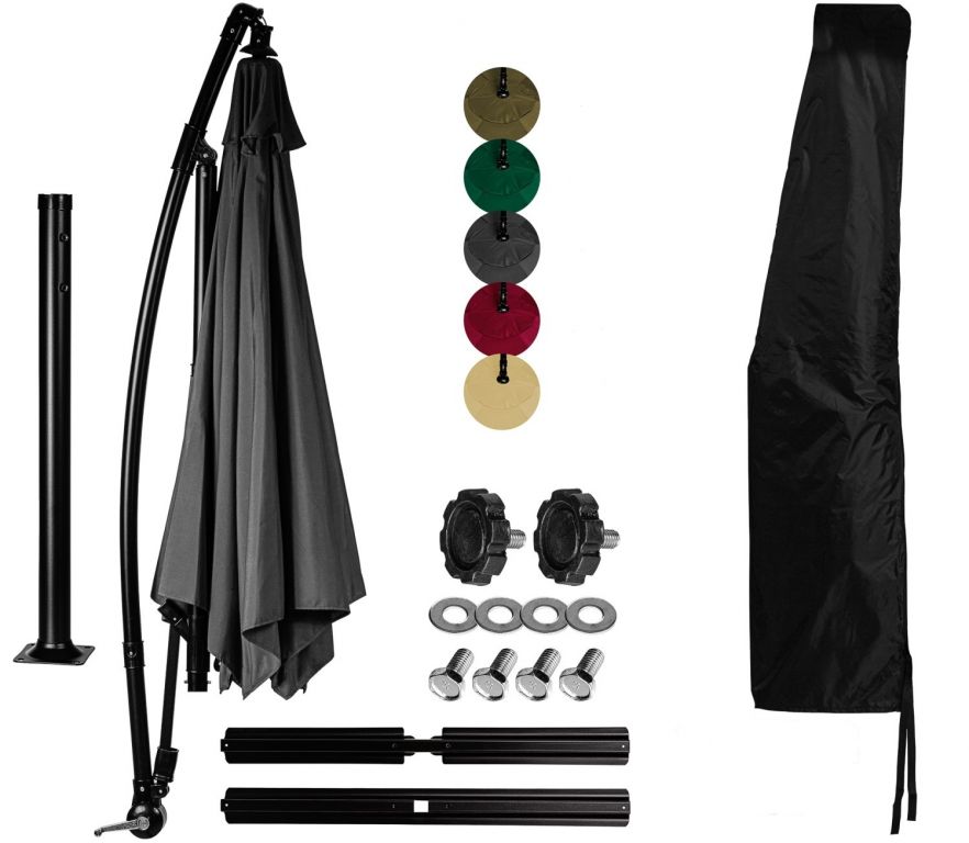 OSTRZEŻENIE: Zwykłe cokoły nie wystarczą do załadowania bocznego parasola. Zalecamy zakup ciężkich płyt betonowych.